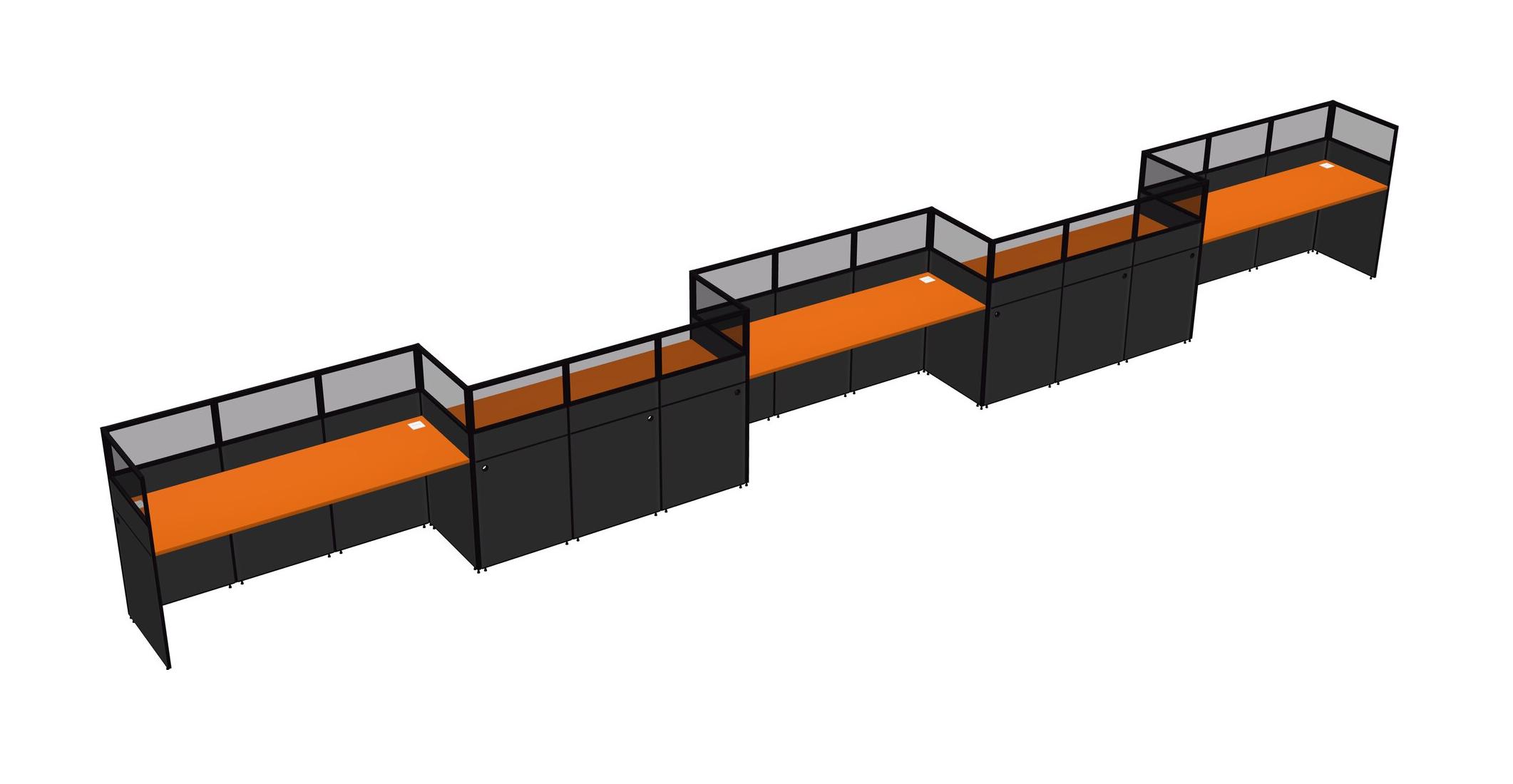 Orange Rectangular Cubicle Workstations For 5 - Zigzag Formation