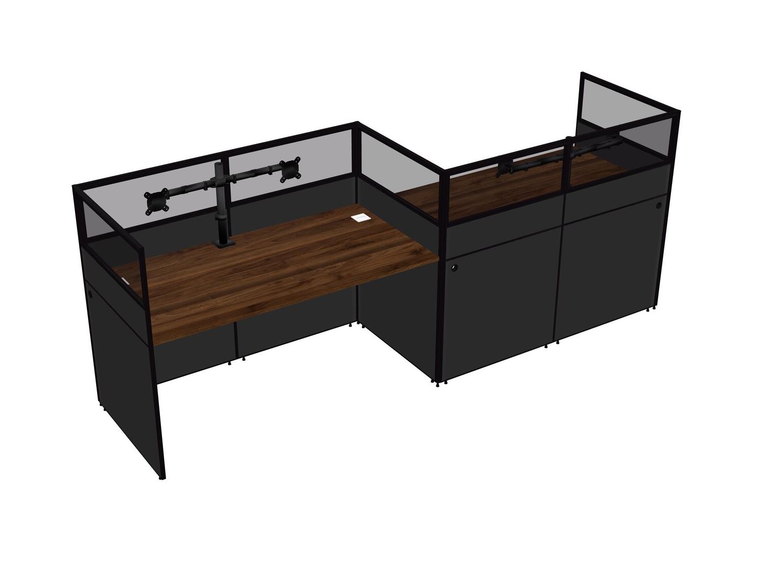 Columbia Walnut Rectangular Cubicle Workstations For 2 - Zigzag Formation
