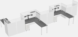 Grey L-shape Cubicle Workstations For 5 - Zigzag Formation + White Metal Mobile Drawers + Panel Return