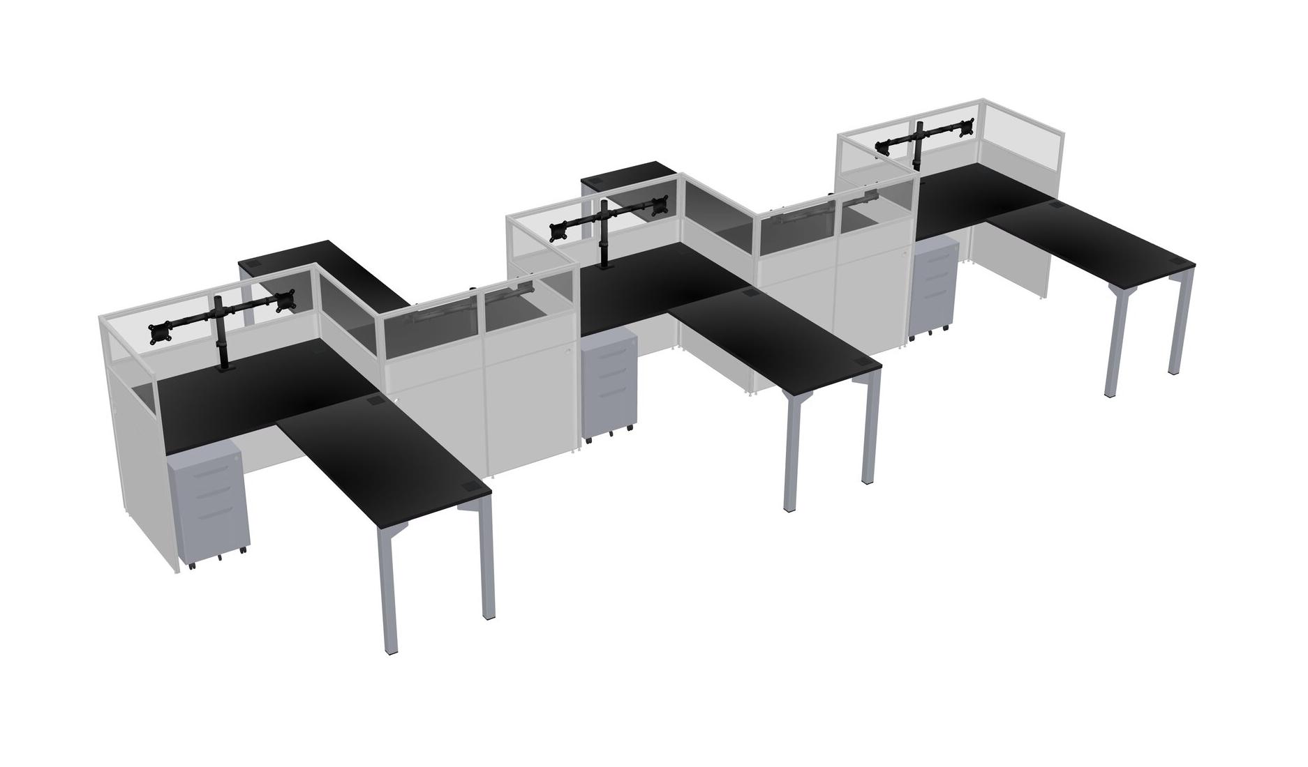 Black L-shape Cubicle Workstations For 5 - Zigzag Formation + Grey Metal Mobile Drawers + Panel Return