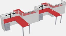 Prism Red L-shape Cubicle Workstations For 4 - Zigzag Formation + Grey Metal Mobile Drawers + Panel Return