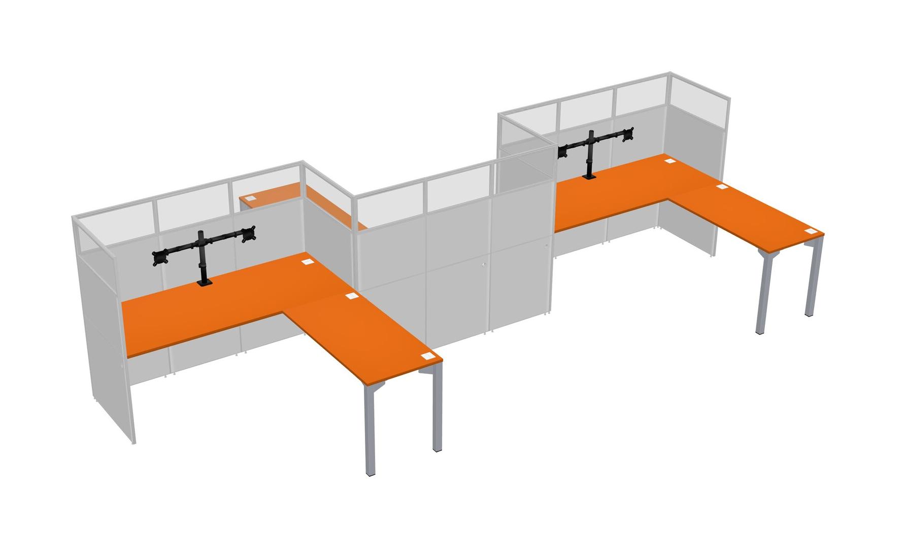 Orange L-shape Cubicle Workstations For 3 - Zigzag Formation + Panel Return