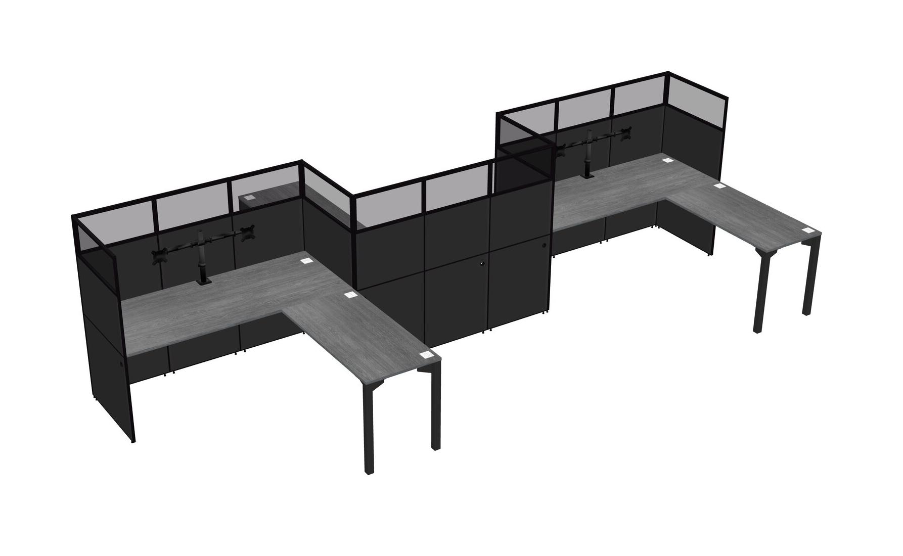 Grey L-shape Cubicle Workstations For 3 - Zigzag Formation + Panel Return