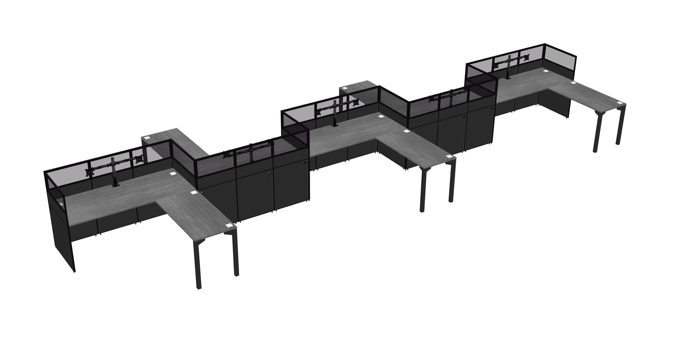 Grey L-shape Cubicle Workstations For 5 - Zigzag Formation + Panel Return
