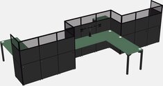 Green L-shape Cubicle Workstations For 3 - Zigzag Formation + Panel Return