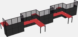 Prism Red L-shape Cubicle Workstations For 5 - Zigzag Formation + Panel Return
