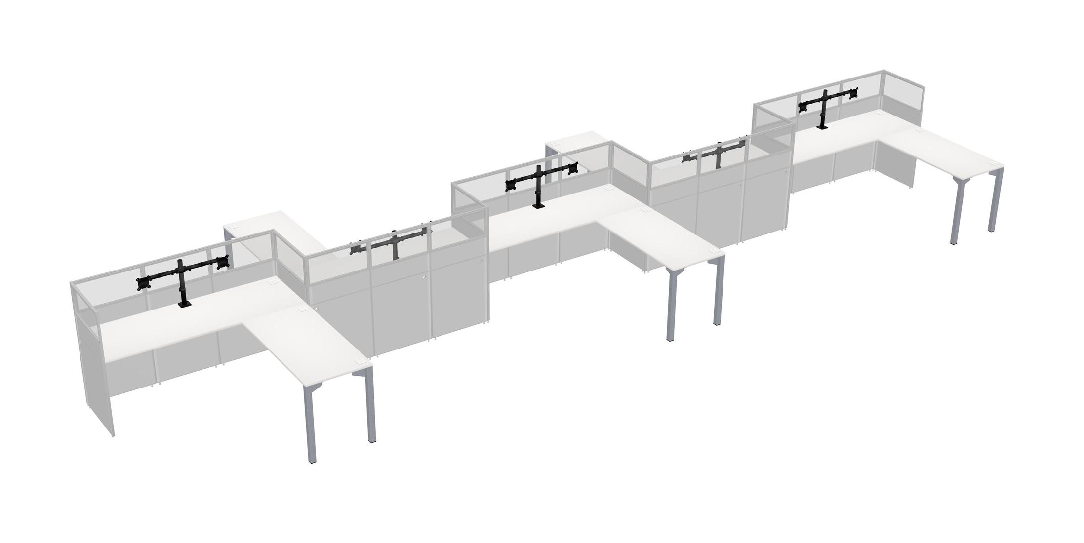 White L-shape Cubicle Workstations For 5 - Zigzag Formation + Panel Return