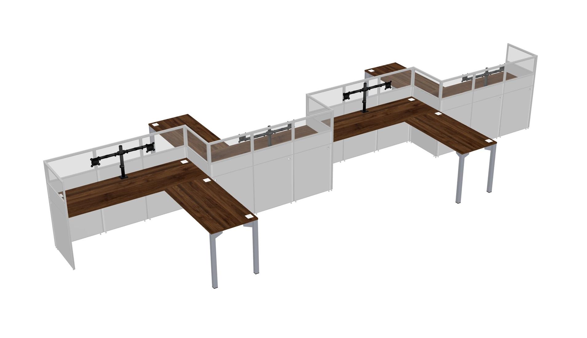 Columbia Walnut L-shape Cubicle Workstations For 4 - Zigzag Formation + Panel Return