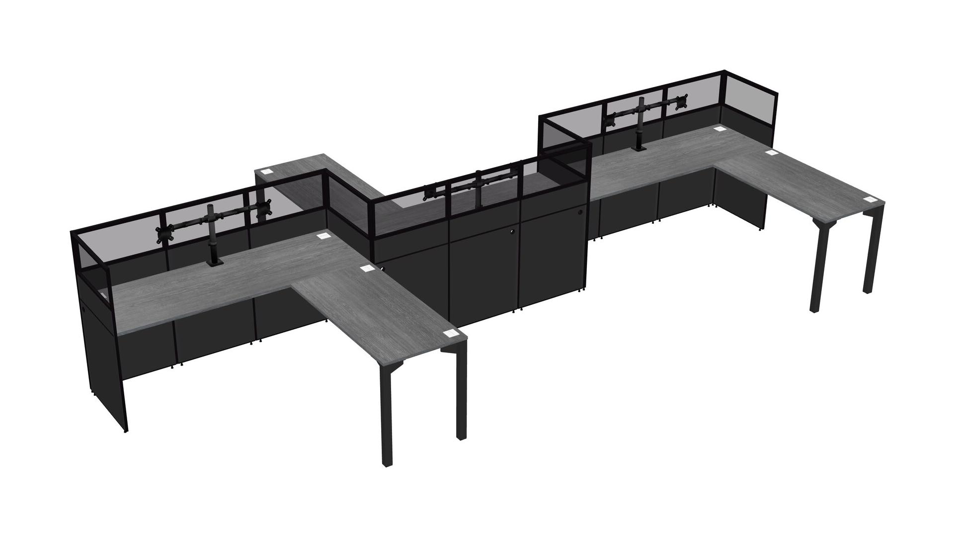 Grey L-shape Cubicle Workstations For 3 - Zigzag Formation + Panel Return