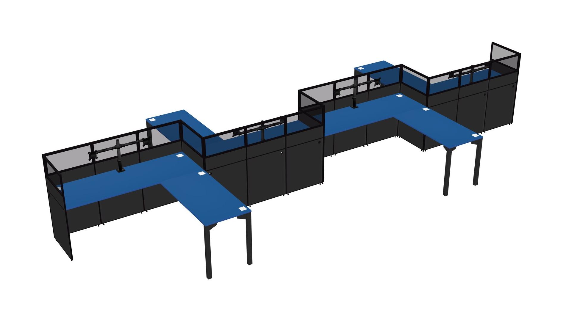 Prism Blue L-shape Cubicle Workstations For 4 - Zigzag Formation + Panel Return