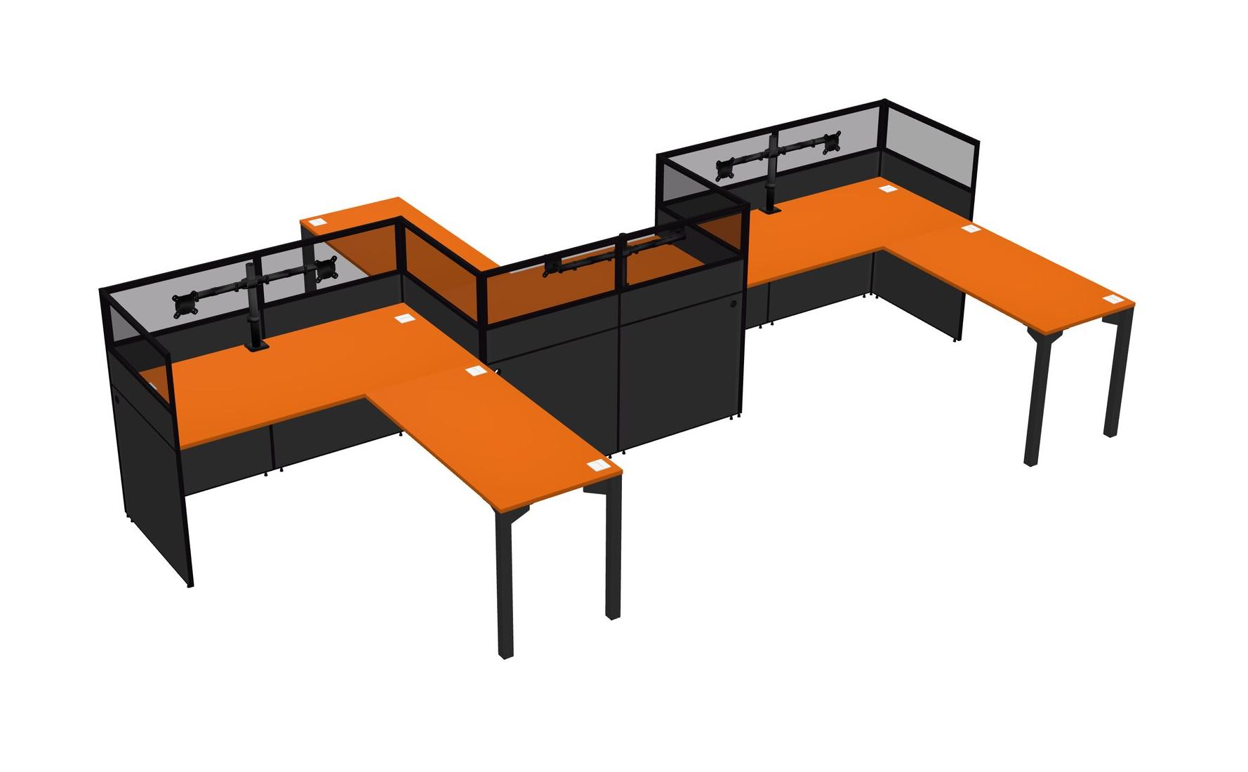 Orange L-shape Cubicle Workstations For 3 - Zigzag Formation + Panel Return