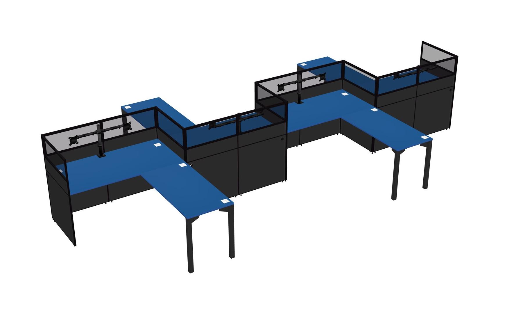 Prism Blue L-shape Cubicle Workstations For 4 - Zigzag Formation + Panel Return