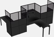 Black L-shape Cubicle Workstations For 3 - Zigzag Formation + Panel Return