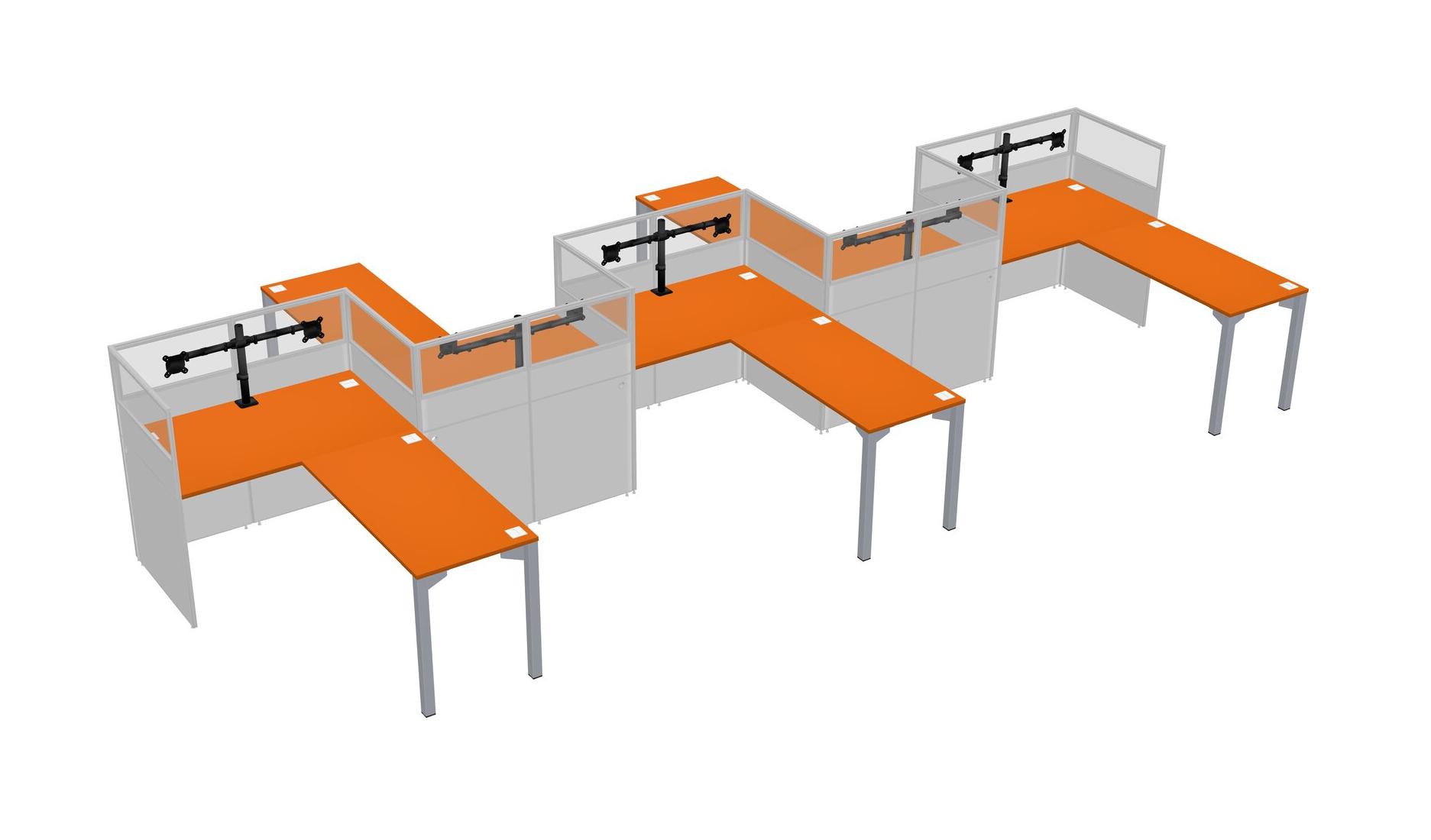 Orange L-shape Cubicle Workstations For 5 - Zigzag Formation + Panel Return