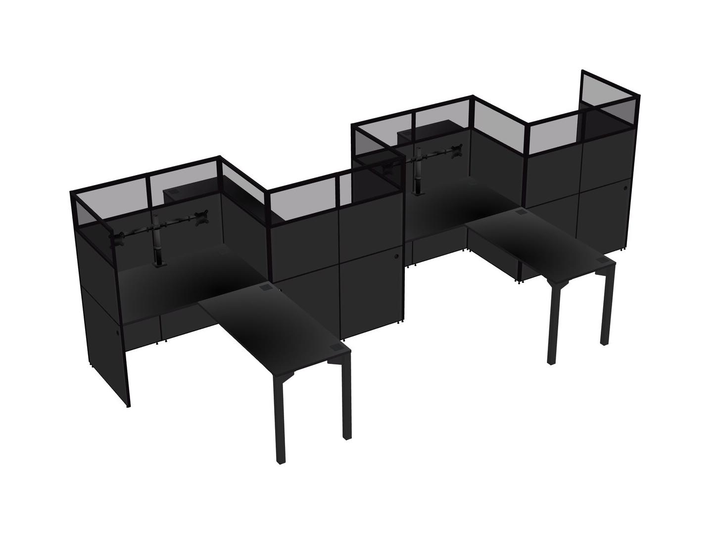 Black L-shape Cubicle Workstations For 4 - Zigzag Formation + Panel Return