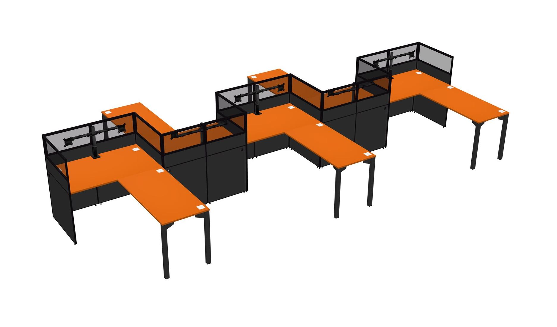 Orange L-shape Cubicle Workstations For 5 - Zigzag Formation + Panel Return