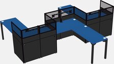 Prism Blue L-shape Cubicle Workstations For 3 - Zigzag Formation + Panel Return