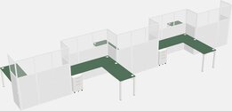 Green L-shape Cubicle Workstations For 5 - Zigzag Formation + White Metal Mobile Drawers + Panel Return