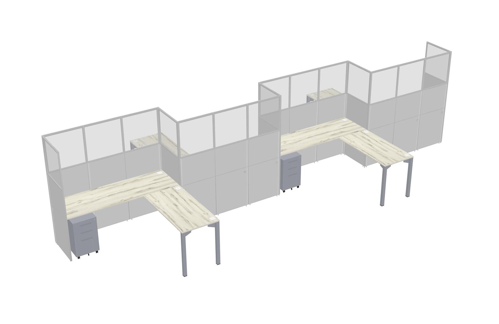Heinne Holz L-shape Cubicle Workstations For 4 - Zigzag Formation + Grey Metal Mobile Drawers + Panel Return