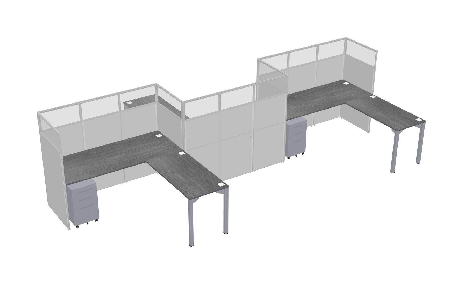 Grey L-shape Cubicle Workstations For 3 - Zigzag Formation + Grey Metal Mobile Drawers + Panel Return