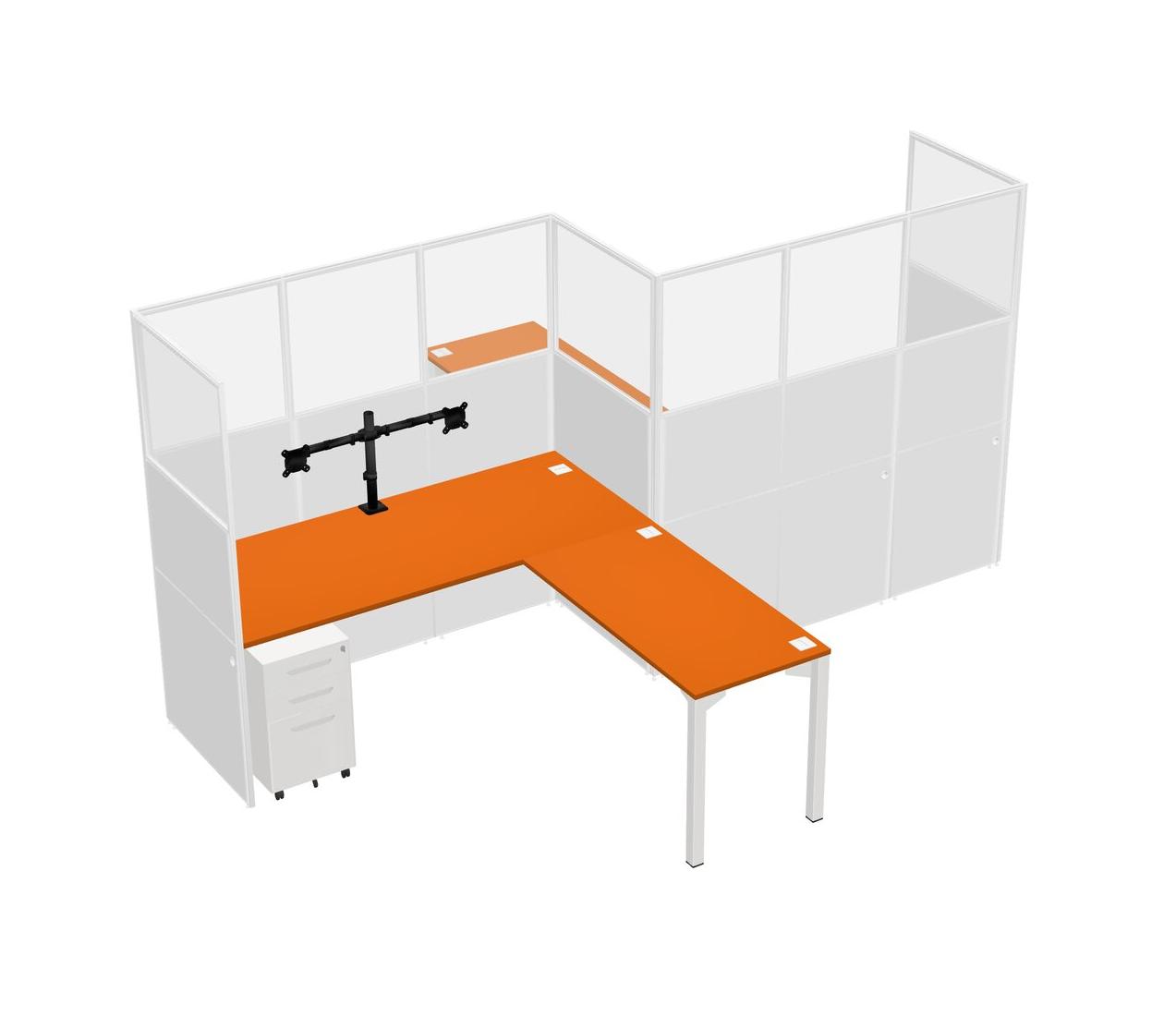 Orange L-shape Cubicle Workstations For 2 - Zigzag Formation + White Metal Mobile Drawers + Panel Return