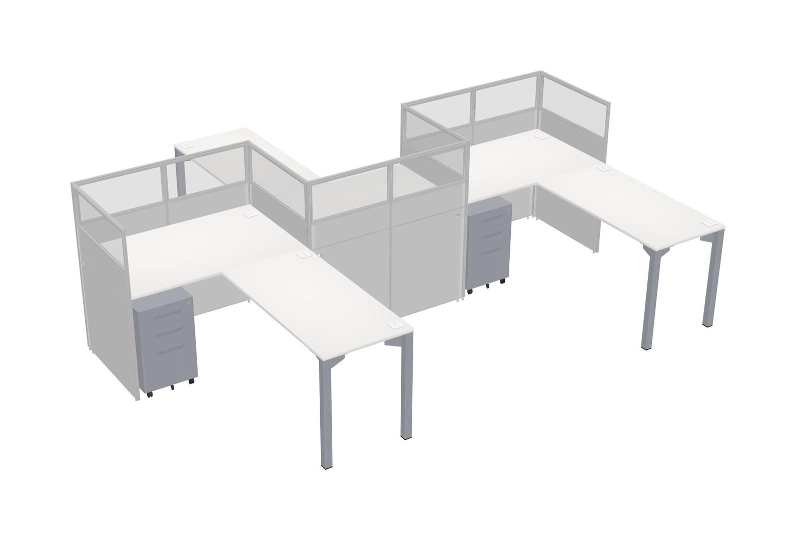 White L-shape Cubicle Workstations For 3 - Zigzag Formation + Grey Metal Mobile Drawers + Panel Return