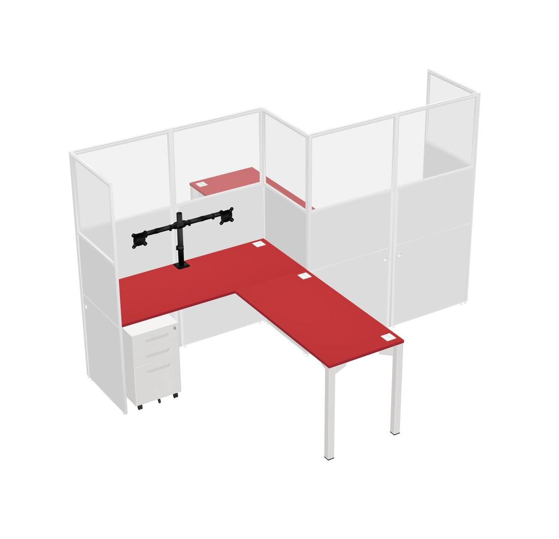 Prism Red L-shape Cubicle Workstations For 2 - Zigzag Formation + White Metal Mobile Drawers + Panel Return