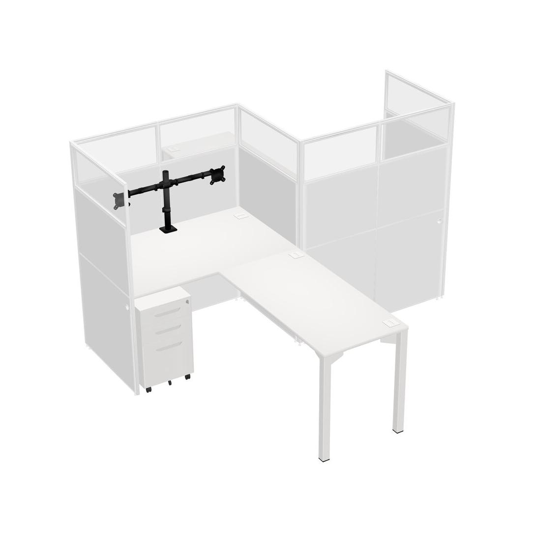 White L-shape Cubicle Workstations For 2 - Zigzag Formation + White Metal Mobile Drawers + Panel Return
