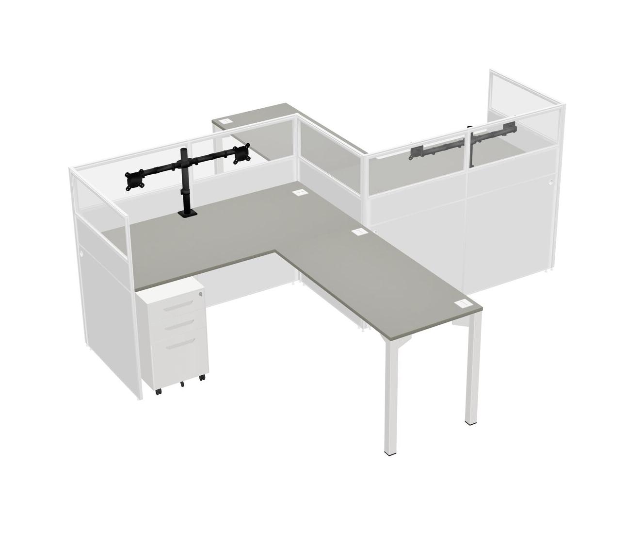 Grey Shadows L-shape Cubicle Workstations For 2 - Zigzag Formation + White Metal Mobile Drawers + Panel Return