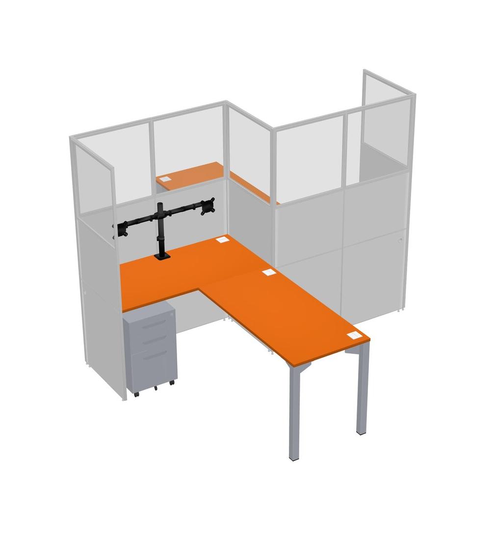 Orange L-shape Cubicle Workstations For 2 - Zigzag Formation + Grey Metal Mobile Drawers + Panel Return