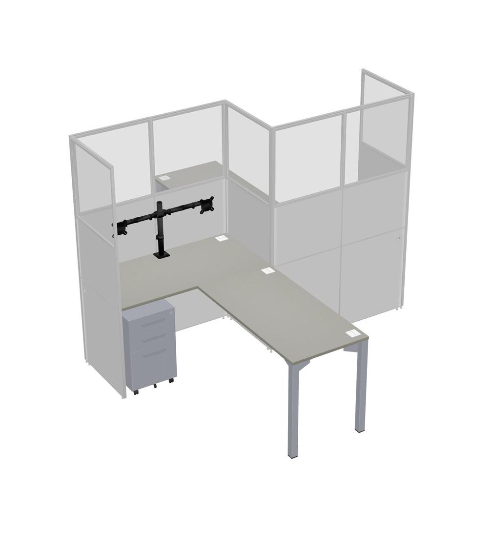 Grey Shadows L-shape Cubicle Workstations For 2 - Zigzag Formation + Grey Metal Mobile Drawers + Panel Return
