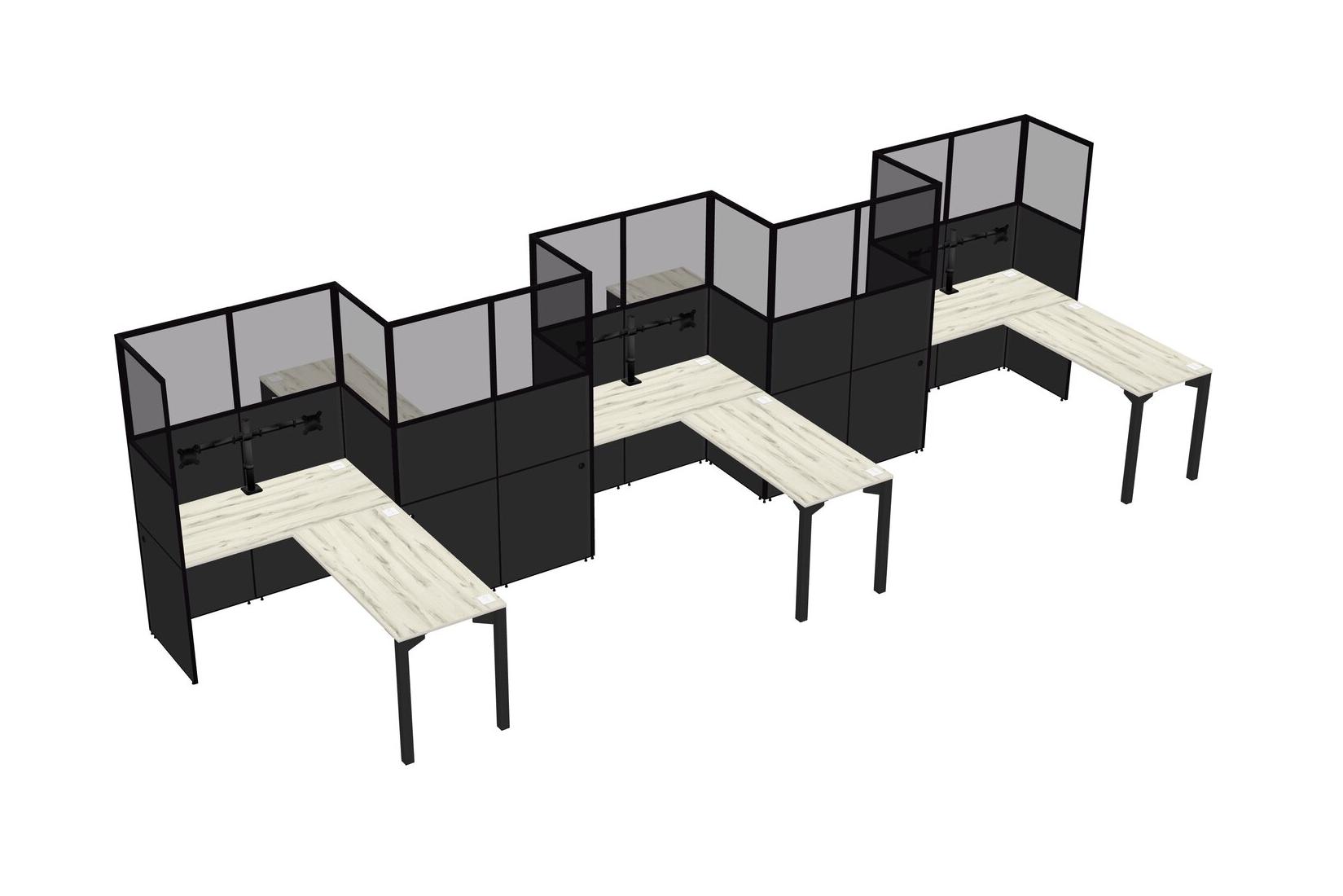 Heinne Holz L-shape Cubicle Workstations For 5 - Zigzag Formation + Panel Return