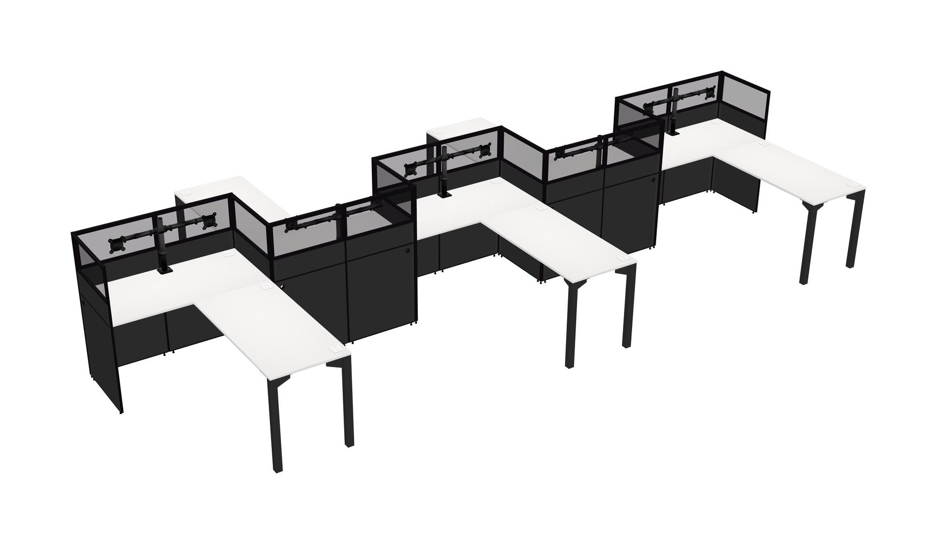 White L-shape Cubicle Workstations For 5 - Zigzag Formation + Panel Return