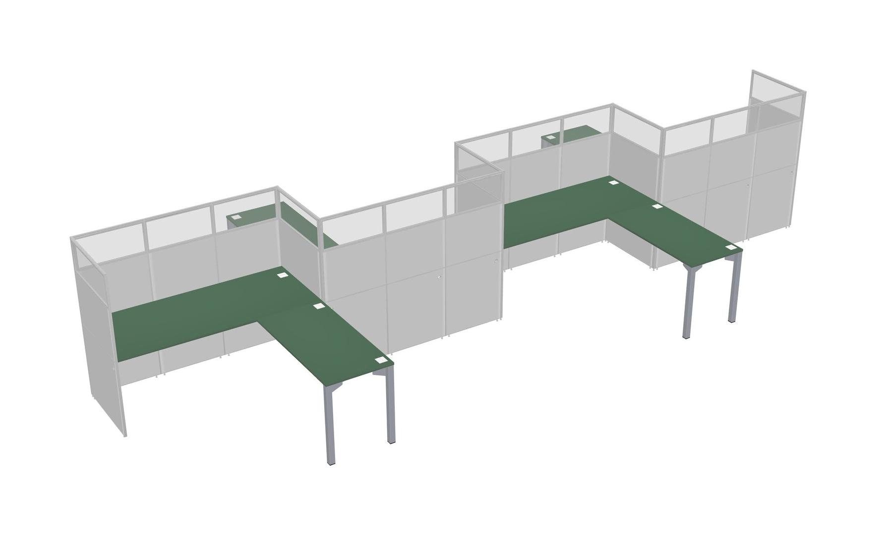 Green L-shape Cubicle Workstations For 4 - Zigzag Formation + Panel Return