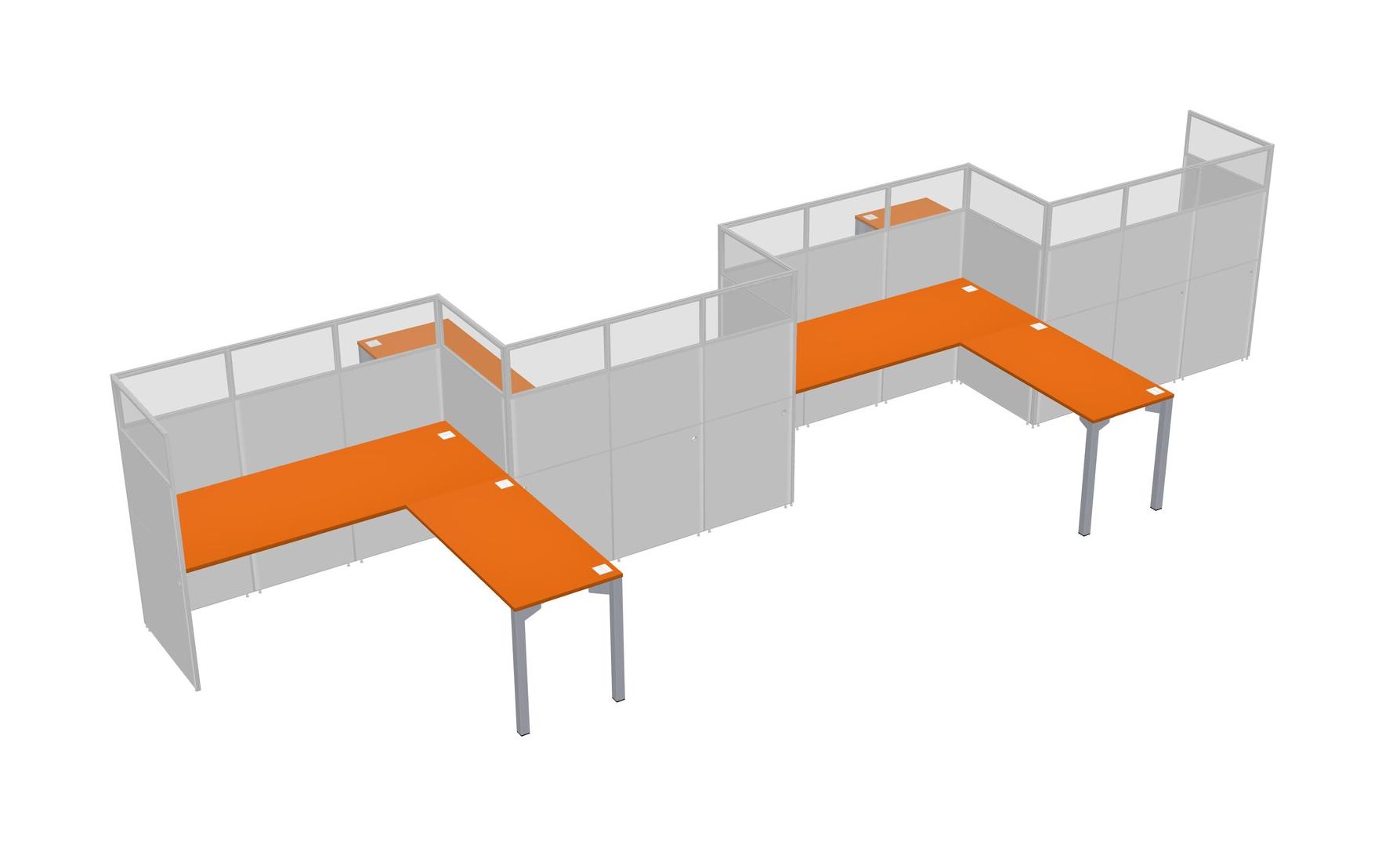 Orange L-shape Cubicle Workstations For 4 - Zigzag Formation + Panel Return
