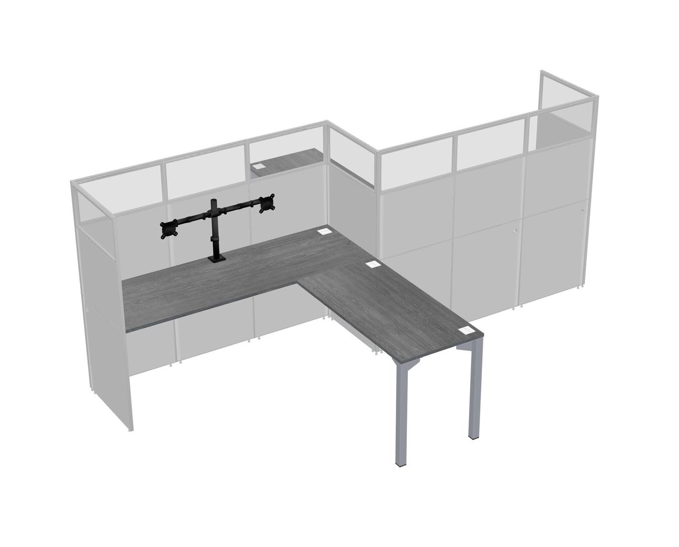 Grey L-shape Cubicle Workstations For 2 - Zigzag Formation + Panel Return