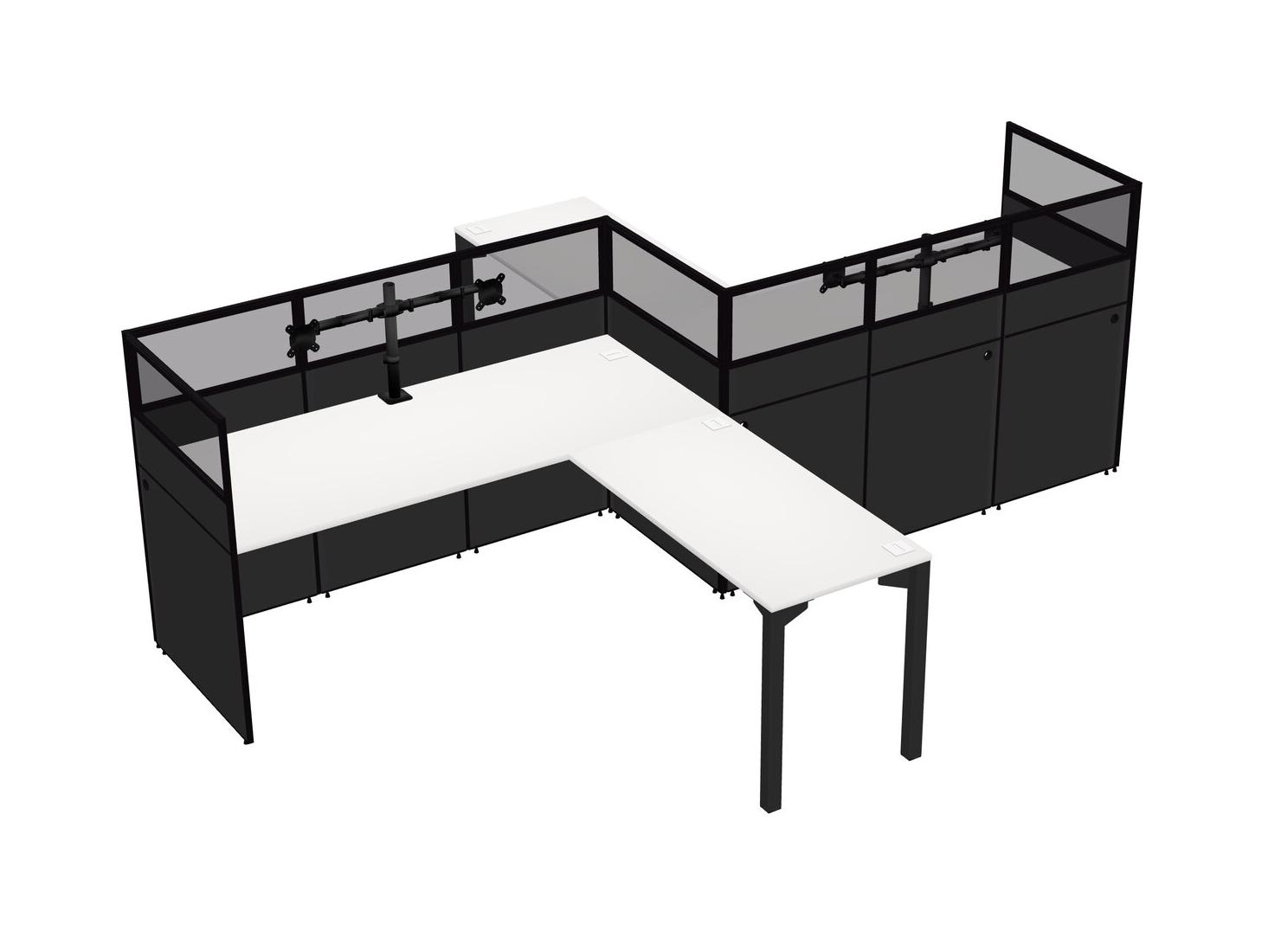 White L-shape Cubicle Workstations For 2 - Zigzag Formation + Panel Return