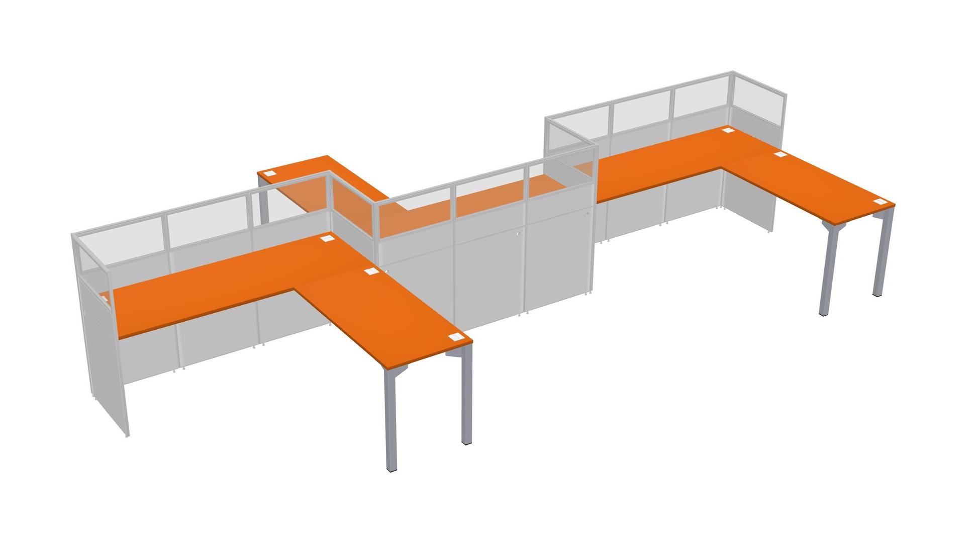 Orange L-shape Cubicle Workstations For 3 - Zigzag Formation + Panel Return
