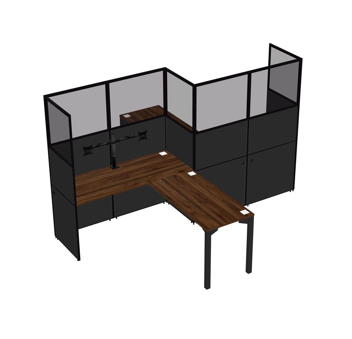Columbia Walnut L-shape Cubicle Workstations For 2 - Zigzag Formation + Panel Return