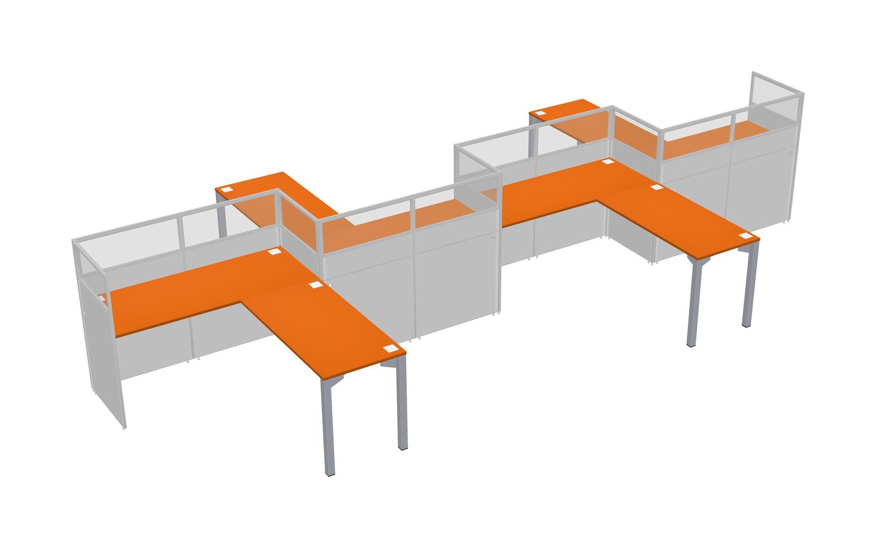 Orange L-shape Cubicle Workstations For 4 - Zigzag Formation + Panel Return