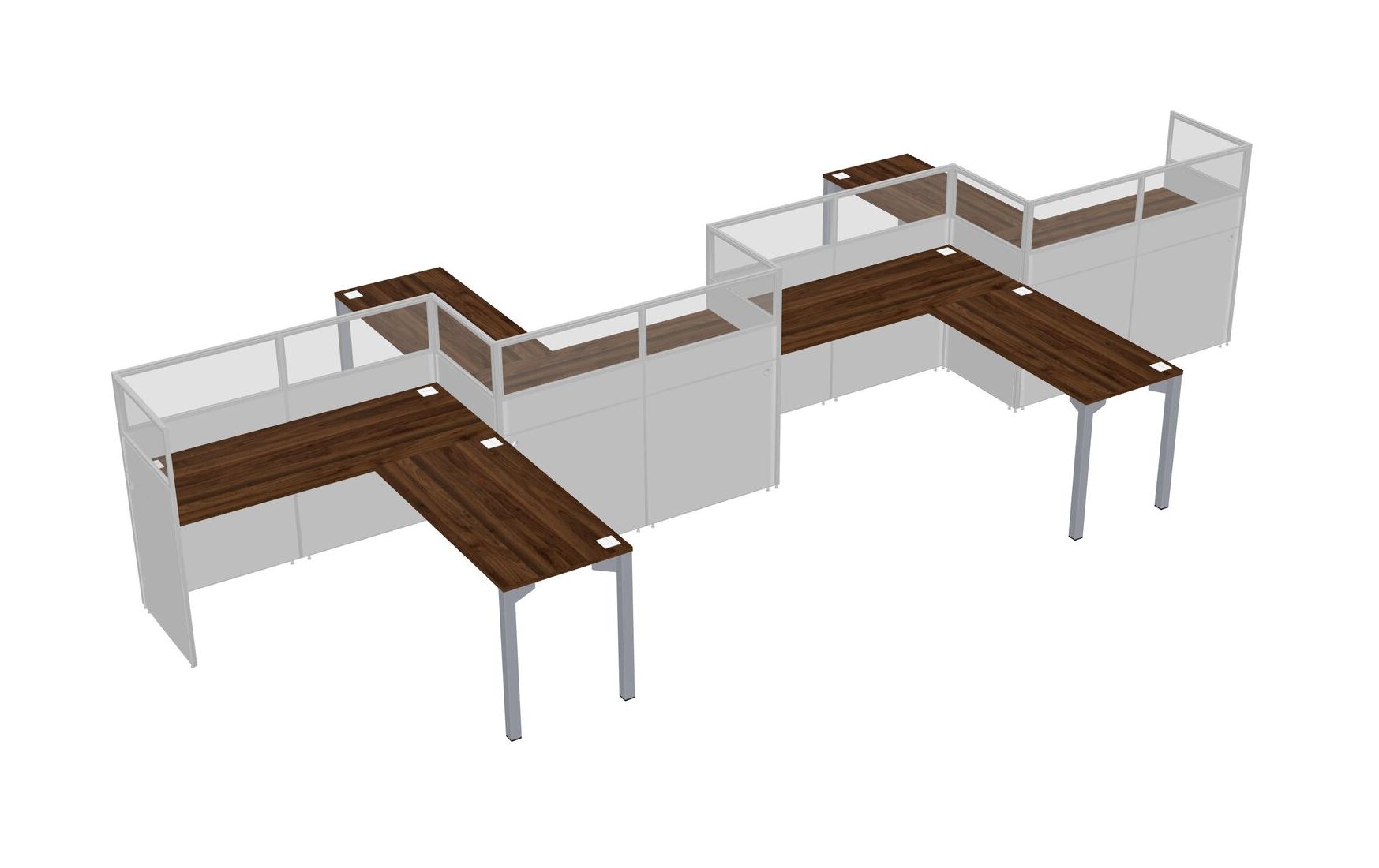 Columbia Walnut L-shape Cubicle Workstations For 4 - Zigzag Formation + Panel Return