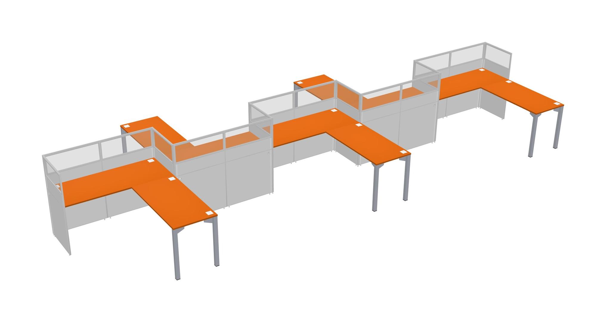 Orange L-shape Cubicle Workstations For 5 - Zigzag Formation + Panel Return