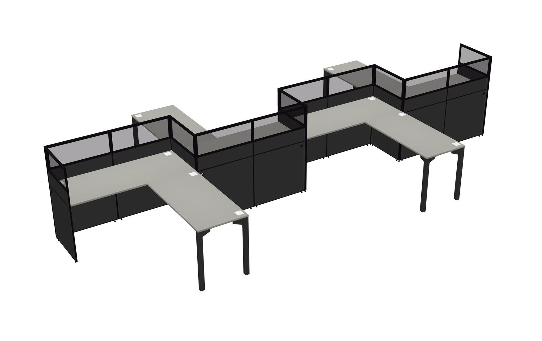 Grey Shadows L-shape Cubicle Workstations For 4 - Zigzag Formation + Panel Return