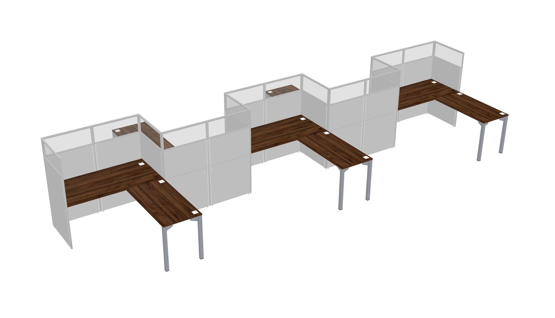 Columbia Walnut L-shape Cubicle Workstations For 5 - Zigzag Formation + Panel Return