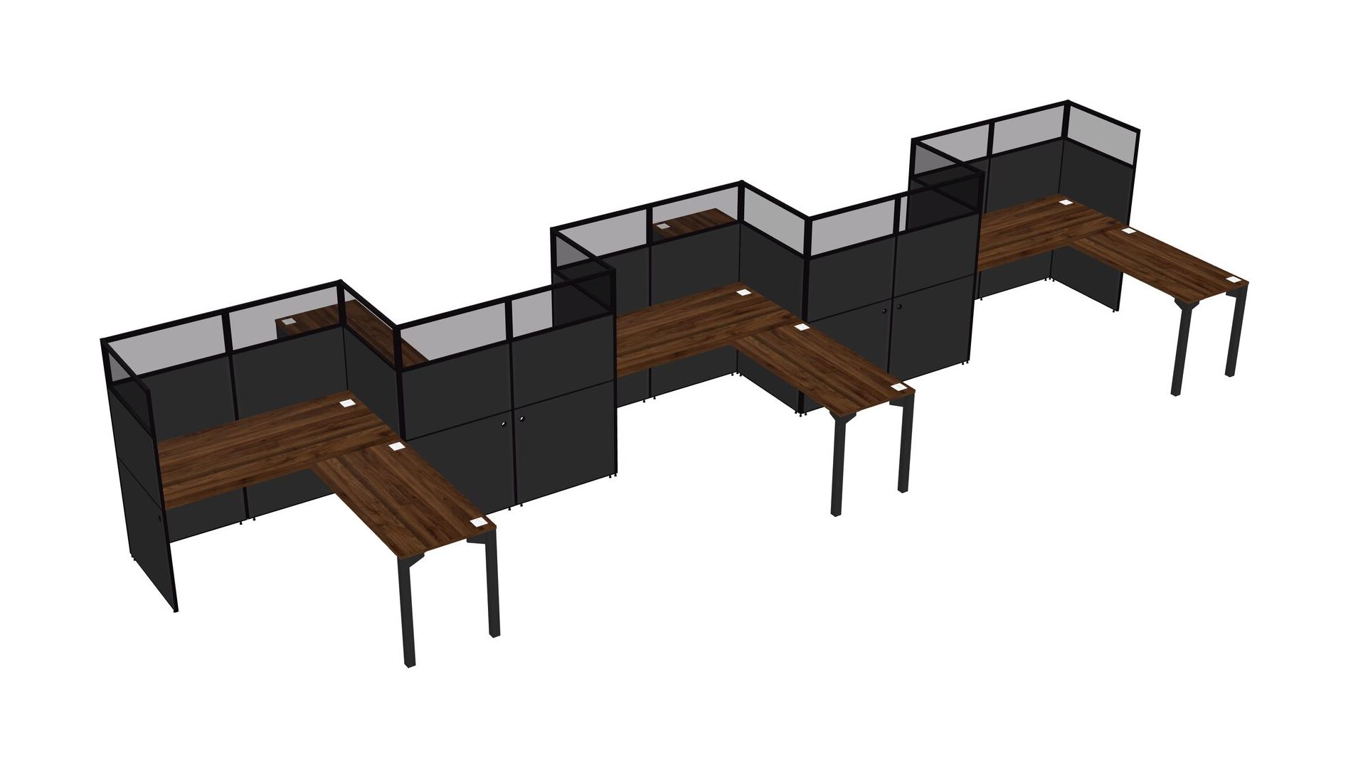 Columbia Walnut L-shape Cubicle Workstations For 5 - Zigzag Formation + Panel Return