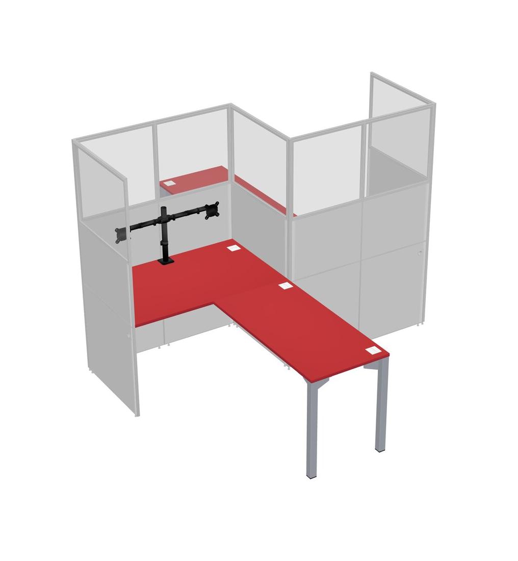 Prism Red L-shape Cubicle Workstations For 2 - Zigzag Formation + Panel Return