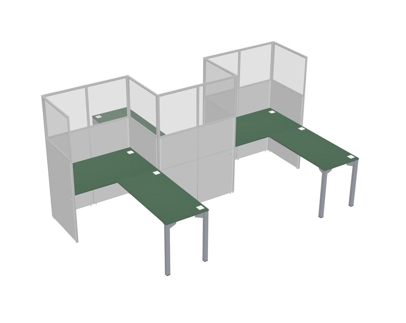Green L-shape Cubicle Workstations For 3 - Zigzag Formation + Panel Return