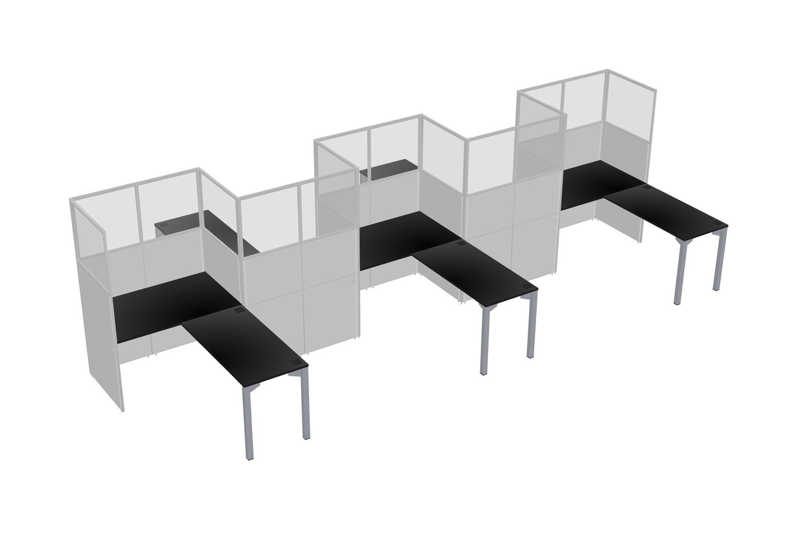 Black L-shape Cubicle Workstations For 5 - Zigzag Formation + Panel Return