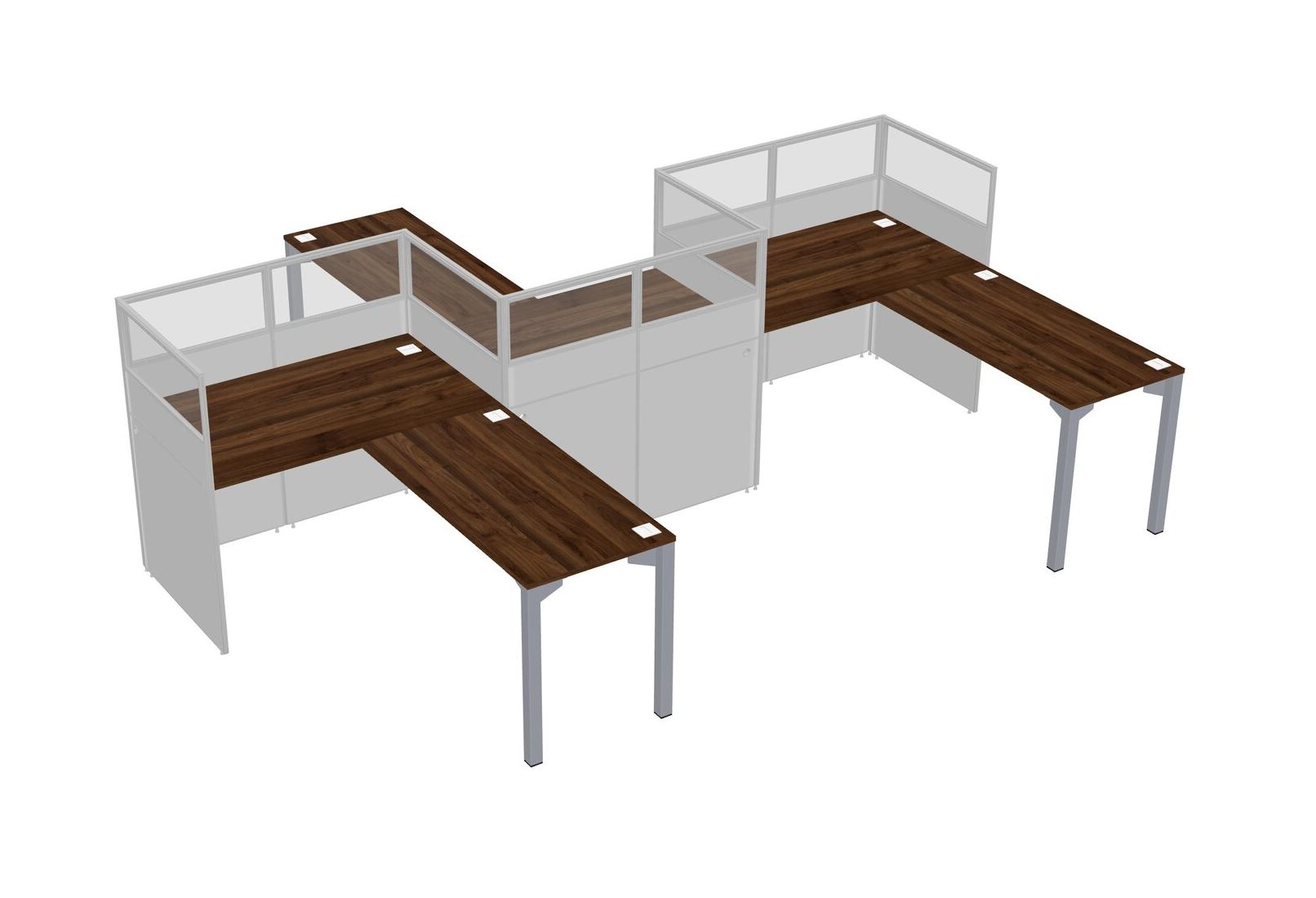 Columbia Walnut L-shape Cubicle Workstations For 3 - Zigzag Formation + Panel Return