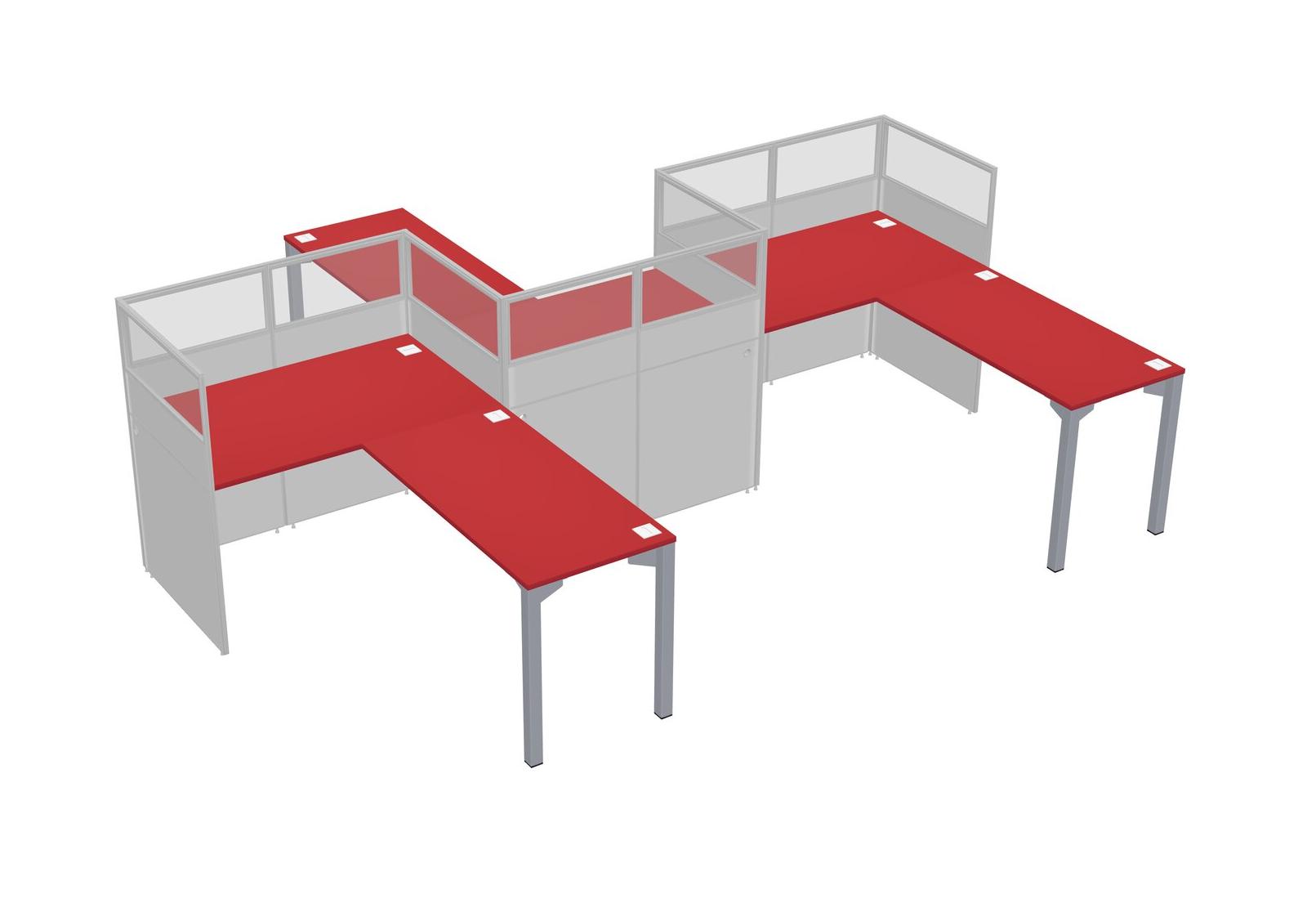 Prism Red L-shape Cubicle Workstations For 3 - Zigzag Formation + Panel Return